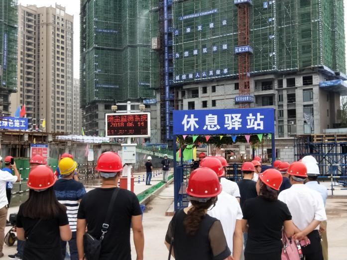2018年6月14日,忠縣2018年建筑施工揚塵污染防治現場觀摩會在我司忠州碧桂園項目舉行,由忠縣城鄉建委楊副主任帶隊,忠縣安監站、環保局及忠縣轄區內建設單位、監理單位、施工單位等共計約100余人對項目采用的揚塵污染防治設施如車輛自動沖洗設施、霧炮降塵、道路噴淋、樓層高空噴淋降塵、道路硬化、裸土覆蓋、安全文明施工等進行了觀摩交流,并組織召開了現場會。楊主任及譚站長等領導對我司忠州碧桂園項目部采用的揚塵控制系統、降塵噴淋設施采取的措施進行了充分肯定,項目揚塵污染防治走在了忠縣建筑施工揚塵污染防治領域的前列,號召參會單位學習、運用。